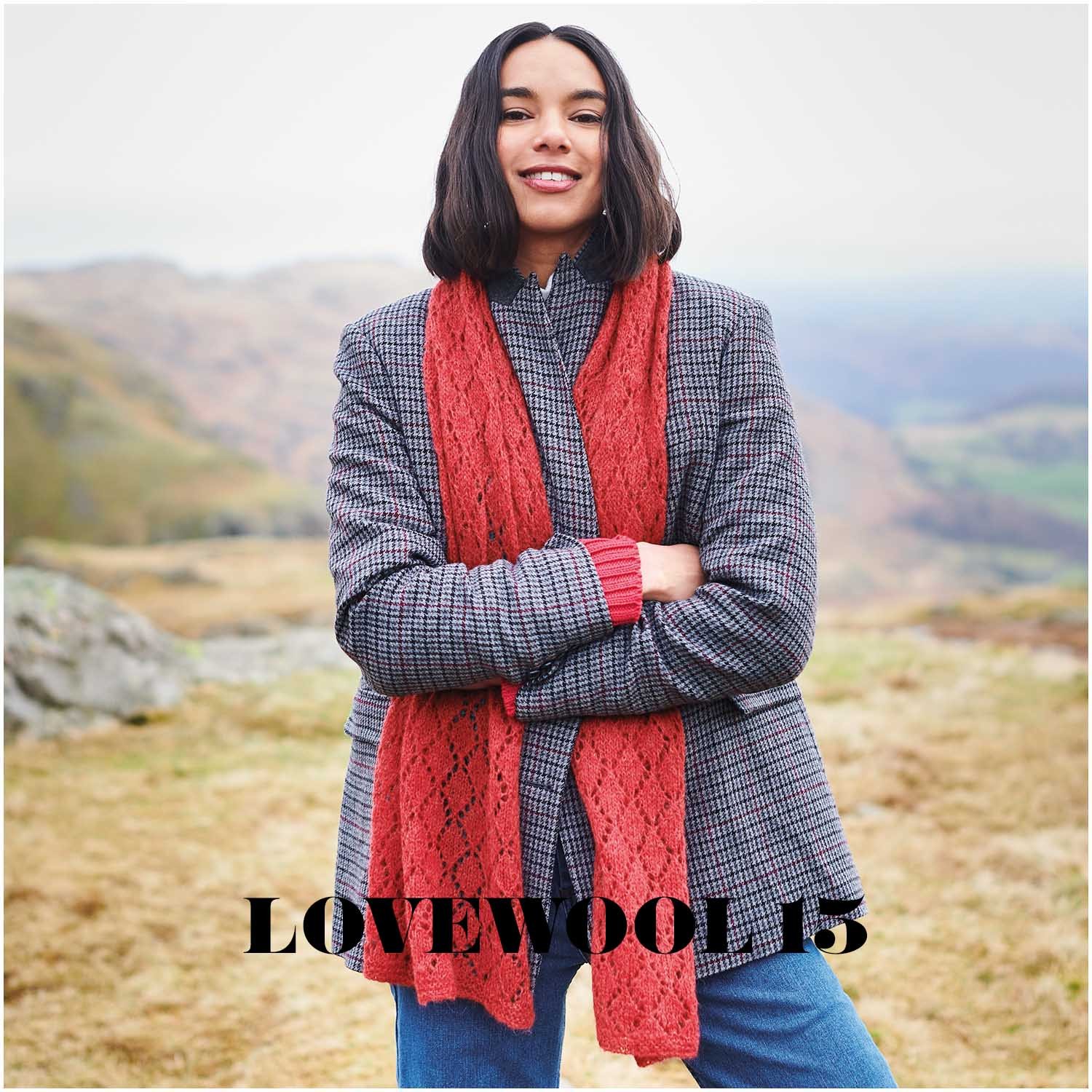 - Châle ajouré** tricoté en coloris 008 (cerise) Lovewool N°15 = 50 gr.