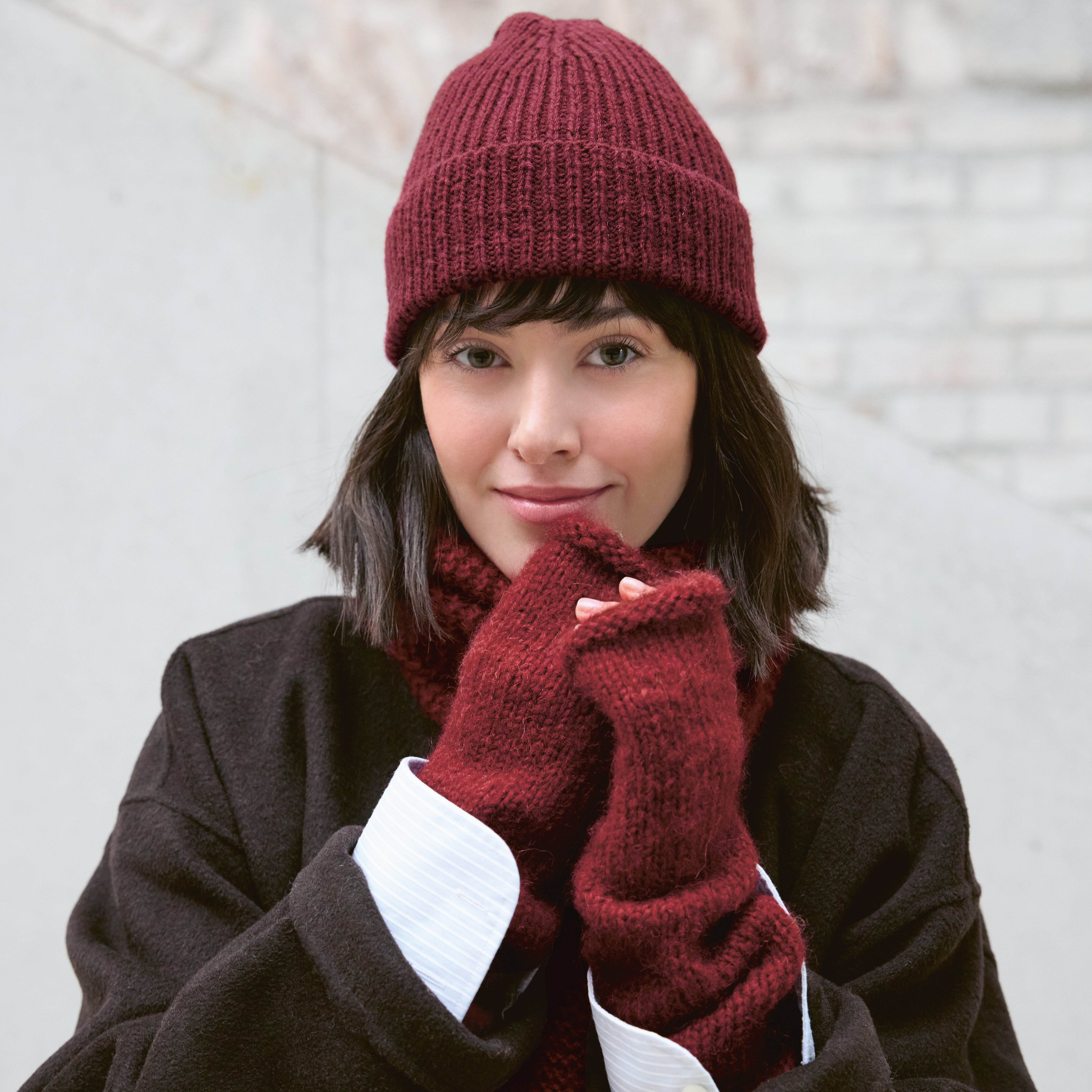 • Mitaines* et Echarpe* : Luxury Knits Premium Natural Fibres = 100 + 100 gr. coloris 004 (bordeaux)